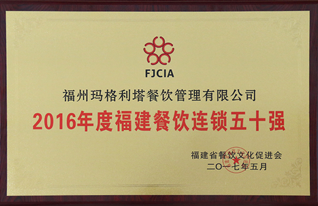 百強企業”、“2016年度福建餐飲50強企業”、 “2016年度福建餐